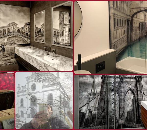 Panourile decorative din oglindă colorata/ eglomizată și securizată sunt o alternativă modernă la placile clasice de faianță, folosite de zeci de ani în placarea pereților. Tot mai mulți designeri renunță la placările cu faianță in proiectele de amenajare a bucatariilor si bailor ultra-moderne, in favoarea panourilor colorate din sticla, considerandu-le deosebit de frumoase si spectaculoase. Panourile din sticla colorată folosite in placarea anumitor zone din bucătarie (pe peretele din zona blatului de lucru, de exemplu) se realizeaza la comanda, in baza unor dimensiuni exacte.